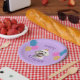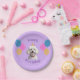 Haz que tu mesa fiesta sea atractiva con nuestros encantadores platos morados, cada uno adornado con una imagen de acuarela ilustrada de un perro en un gorra fiesta. Estos platos complementan perfectamente nuestras invitaciones para fiestas de cumpleaños, creando un tema cohesivo y delicioso para tu celebración.