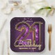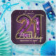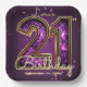 Celebrate the milestone of turning twenty-one with this luxurious and trendy party plate. This aesthetic features a bold number "21" filled with a stunning, fractured purple amethyst crystal texture, outlined in elegant faux gold typography. Set against a deep, rich violet background with scattered confetti accents, this design perfectly captures a "glamorous gemstone" vibe.