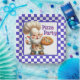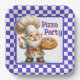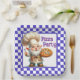 A Cute Purple Check Pizza Party Gnome Paper Square Plate