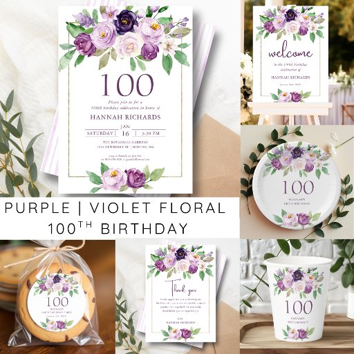 Purple | Violet Floral 100th BirthdayDiseñado por Natalie