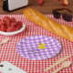 Plato De Papel Purple Gingham Rubber Duckie Baby Shower