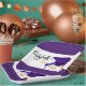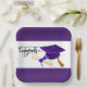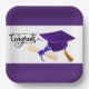 A Purple Congrats Graduation Cap With Diploma Square Paper Plate