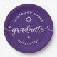 Plato De Papel Purple Graduation Script Hearts Cap Icon Modern