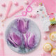 Beautiful purple tulips paper party plates with a watercolor illustration.