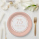 Platos básicos de papel rosa y blanco para fiestas de 75 años personalizados con tu nombre, edad (cualquier edad) y fecha de fiesta.