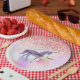 Plato De Papel Púrpura unicornio Purpurina de arcoiris con corazó