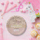 Estrellas doradas resplandecientes y adorables en combinación con un fondo dorado subió rosado. Chica a la moda, niña, dulce, caprichosa, plato de fiesta de primer cumpleaños. Twinkle Twinkle Little Star.