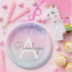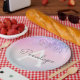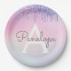 Plato De Papel Purpurina Arcoiris Lluvia Con Monograma