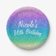 Plato De Papel Purpurina arcoiris Sparkle Glam Personalizado del