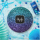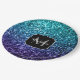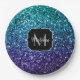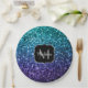 Plato De Papel Purpurina azul Aqua Ombre fino chispas Monograma