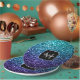 Personalice la placa de papel de la fiesta de cumpleaños brillante con su nombre y fecha inicial. Hermosas purpurinas brillantes, glamorosas y oscuras, brillan con agua y púrpura. ¡Foto de chispas cian y azul oscuro no es purpurina real!