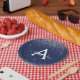 Plato De Papel Purpurina azul de la Marina Plata Esparkle Monogra