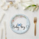 Plato De Papel Purpurina azul y flores pálidas Papel Plate