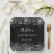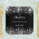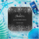 Un elegante fondo negro con elegantes purpurinas de color plateado falso, chispas. El texto: El nombre está escrito en blanco con una escritura de estilo con letras a mano moderna. Personalice y agregue un nombre, edad y fecha.