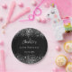 Un elegante fondo negro con elegantes purpurinas de color plateado falso, chispas. El texto: El nombre está escrito en blanco con una escritura de estilo con letras a mano moderna. Personalice y agregue un nombre, edad y fecha.