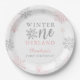 Plato De Papel Purpurina de Plata Rosa Invierno Onederland Primer