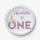 Plato De Papel Purpurina morado un unicornio primer cumpleaños