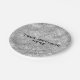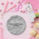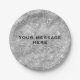 Una placa de papel con fondo de purpurina plateado y espacio para el mensaje.