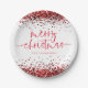 Plato De Papel Purpurina Rojo Feliz Fiesta de Navidad Blanco