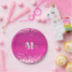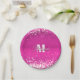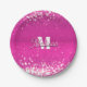 Plato De Papel Purpurina rosa caliente Monograma de Bokeh