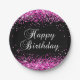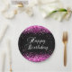 Plato De Papel Purpurina Rosa Caliente Negro Feliz cumpleaños