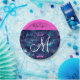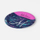 Rompecabezas crujientes y brillantes rosa, morado, turquesa acuática, verde y azul purpurina chispas coronas/ tiaras princesa de Sirena nombre monograma y placa de papel inicial. Su nombre personalizado está escrito en negro con un fondo rosado caliente, y su monograma personalizado está escrito en blanco con un elegante guión con letras a mano. ¡Un regalo perfecto de cumpleaños o Navidades!