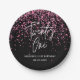 Plato De Papel Purpurina rosado caliente esparcido negro cumpleañ