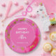 Plato De Papel Purpurina Rosado Caliente Sorpresa fiesta de cumpl