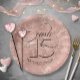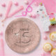 Celebra tu evento de Quinceanera con estilo con este plato de papel con un original estilo decorativo, un estilo retro a la moda y un llamativo fondo de oro rosa. El llamativo texto 'Cara Quince' o 'Cara 15' (queridos o preciados quince) es un paralelo a la celebración en inglés de 'Sweet 16' y agrega una alternativa moderna única al título 'Quinceanera' estándar usado normalmente para este evento especial. Utilice la plantilla proporcionada para agregar el nombre y la fecha de nacimiento de una celebridad. Busque ID701 para ver otros productos y opciones de color para este diseño.