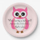 Plato De Papel ¿Quién está teniendo una niña? Búho rosado Baby