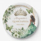 Plato De Papel Quinceañera Green Floral Butterfly Gold Tiara