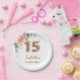 Plato De Papel Quinceanera rosa floral oro eucalipto monograma