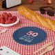 Plato De Papel Quincuagésimo 50.o azul rojo de los hombres el |