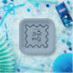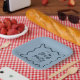 Raro y divertido plato de fiesta de graduación con línea ondulada dibujada a mano como marco. El fondo es azul marino.