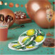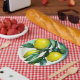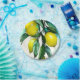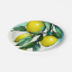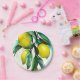 Estas placas de papel coloridas presentan hermosos limones de color amarillo en una rama de limón con hojas verdes azules.