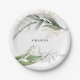 Increíbles platos de papel para fiesta de boda con rama de eucalipto botánico moderno frondoso. Esto será parte de la suite.