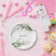 Increíbles platos de papel para fiesta de boda con rama de eucalipto botánico moderno y frondoso. Esto será parte de la suite.