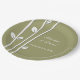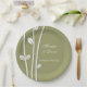 Plato de papel Ramas blancas con hojas con tres ramas blancas elegantes con hojas blancas sobre un fondo verde oliva. © Morning 6