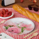 Plato De Papel Ramo de 55.o cumpleaños de los rosas rosados