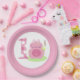 Plato De Papel Rana rosa Primer Chica de cumpleaños Primer Fiesta