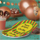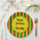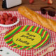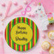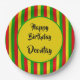 Empieza tu fiesta jamaiquino con estos platos fiestas de color rasta. El diseño está decorado con rayas rojas, amarillas y verdes de color bandera rasta. Todo el texto es personalizable