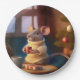Una linda ratonera tomando té cerca de un árbol de Navidad. ¡Un plato encantador para los fiestas de tus Navidades! Busca los artículos que coincidan en mi tienda.