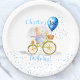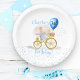 Cute Mouse Animal Bicycle Boy Primer Cumpleaños Plates de papel Fiesta - Simple, moderno y divertido estilo libro de ilustracion infantil Estilo de fiesta de cumpleaños. Personaliza con nombre y edad.