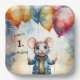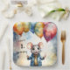 Esta placa de papel muestra un lindo ratón con una chaqueta y pantalones, sosteniendo muchos globos en sus manos. Arte digital - acuarela. ¡Un motivo súper lindo para los niños! Bonito personalizable de placas de papel para el cumpleaños del niño, ducha de bebé y más!