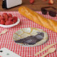 Un Raven encaramado en piedra en la Torre de Londres adorna este divertido plato de fiesta de Halloween. Foto de referencia de Gustav Sommer en Pixabay.