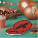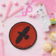 Una silueta simple y negra de un Raven (Corvus corax) sobre una imagen de fondo roja de cuero. La imagen del cuervo ha sido ligeramente "áspera" o "desgastada". Añade tu propio texto. Añada el valor del chip, 50 centavos, 1 dólar, etc., al revés.