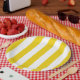 Plato De Papel Rayas amarillas, franjas blancas, patrón rayado