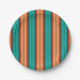 Plato De Papel Rayas arcoiris turquesa roja, Naranja suroeste