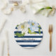 Plato De Papel Rayas azules oscuras y flores boda floral moderno