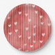 Plato De Papel Rayas Blancas Rojo Romántico Corazones de Amor